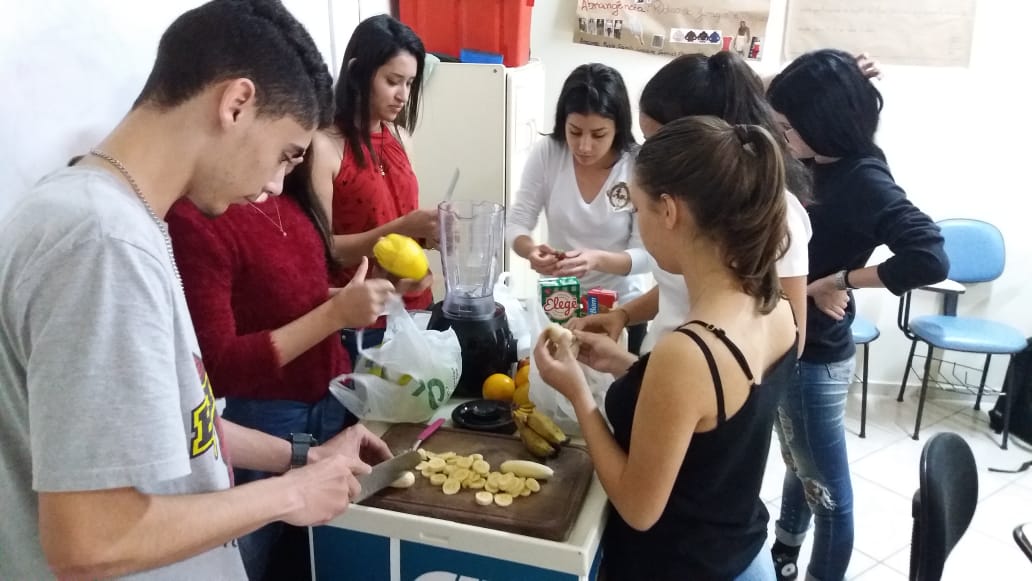 Os jovens se organizaram em grupos, preparam e serviram os alimentos, assim como apresentaram os benefícios para a imunidade.