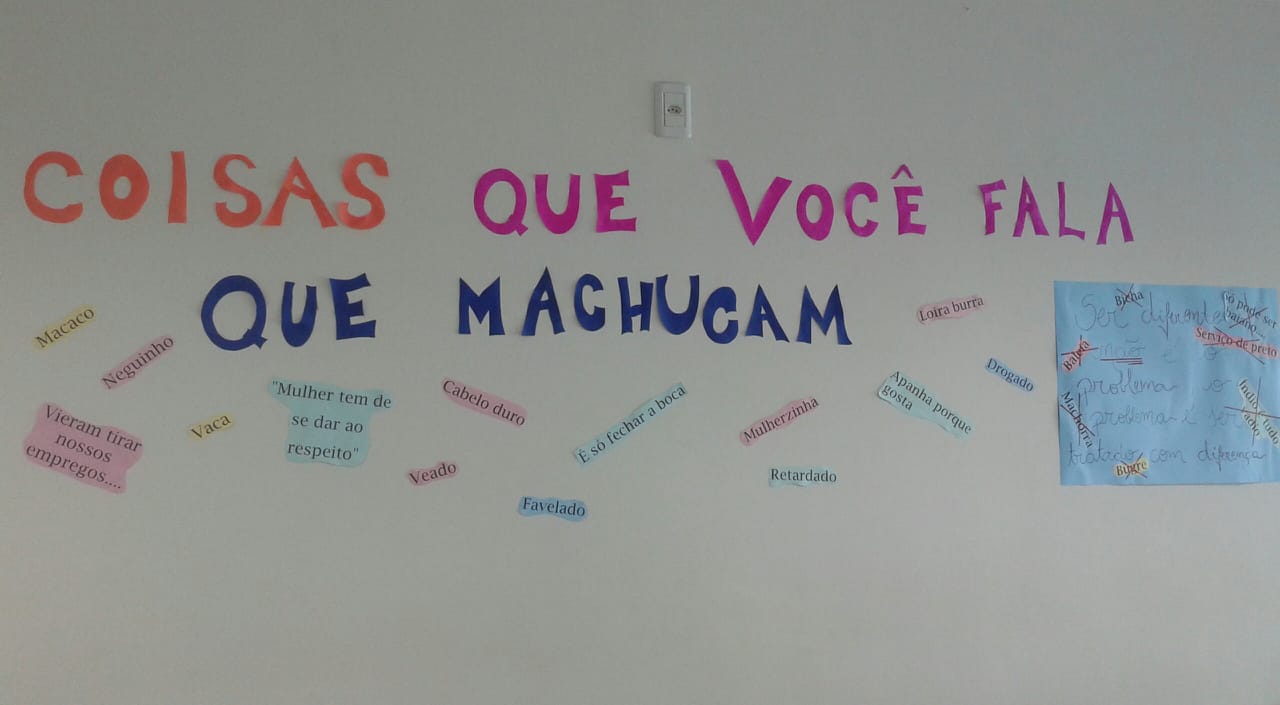 Os jovens destacaram sobre situações que, muitas vezes, não se dão conta que pode ser considerado preconceito, como palavras e frases preconceituosas. Além disso, falaram sobre a necessidade de refletir sobre essas ações.
