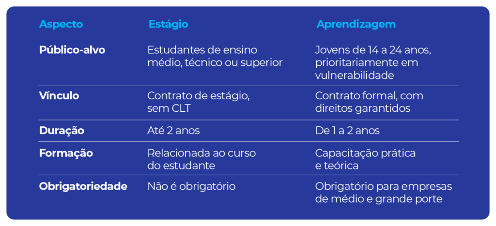 Estágio x Aprendizagem: comparativo prático