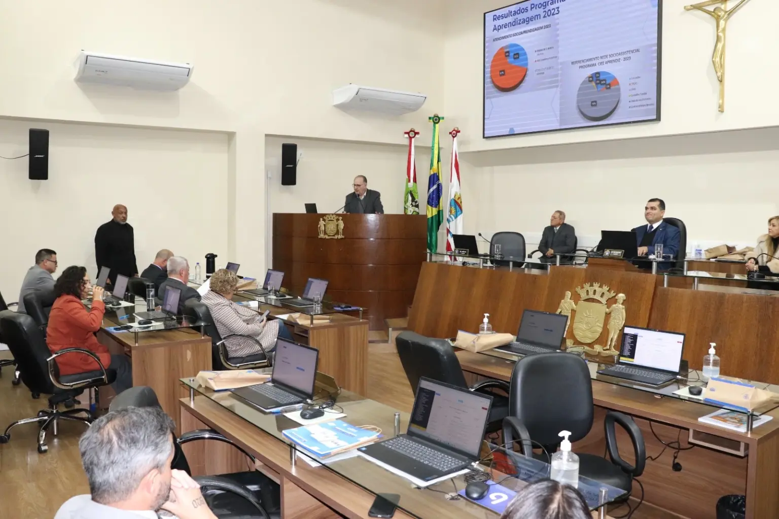 O requerimento da apresentação foi de autoria do próprio presidente da Casa, vereador João Cobalchini. A sessão foi conduzida pelo vice-presidente da Câmara, vereador Claudinei Marques.