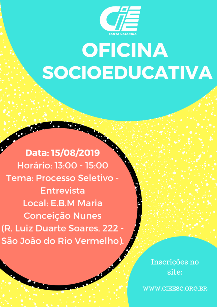 Inscrições para as Oficinas Socioeducativas no E.B.M Maria Conceição Nunes