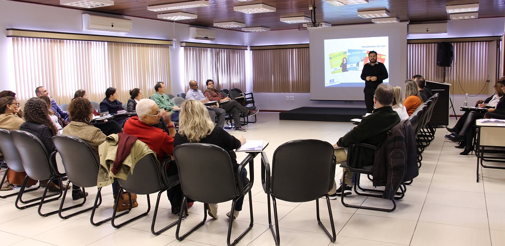 Na oportunidade, foi abordado os temas: Legislação do estágio; Processos seletivos; Portal de serviços do CIEE/SC; e-Social; Acompanhamento de estágios; Assinatura eletrônica de documentos; Vale transporte x auxílio transporte.