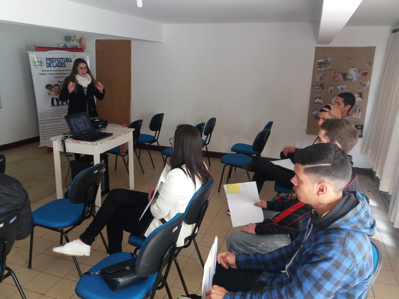 “Recebemos nessa semana a demanda do CREAS-I de Lages, solicitando a realização de algumas orientações. Os jovens usuários do serviço participariam de um processo de seleção durante esta semana, e grande parte deles nunca haviam participado de uma entrevista de emprego, o que acabava tornando o momento ansiogênico”, afirma Izabela.
