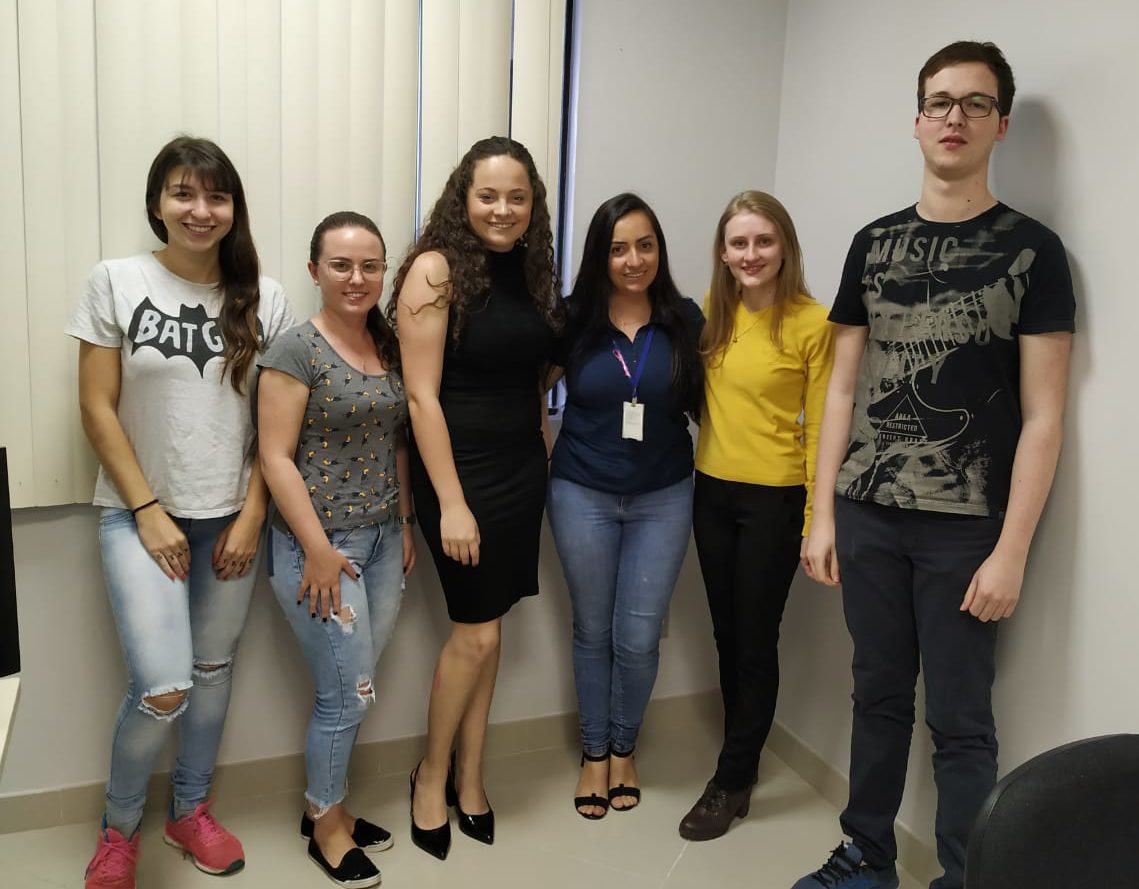 Os estagiários também preencheram o relatório de avaliação do estágio e o momento foi registrado com uma foto.