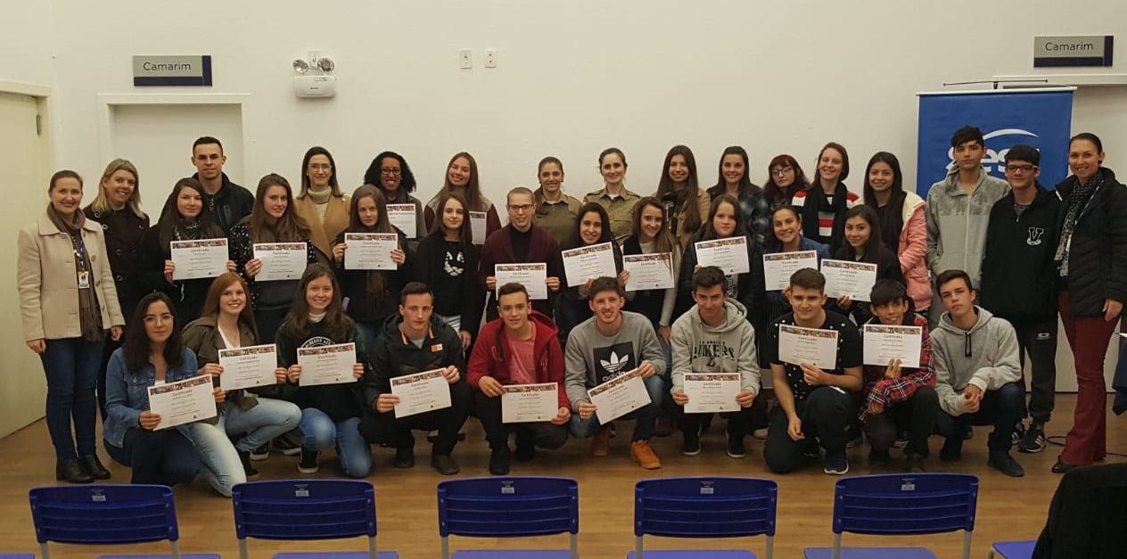 Aconteceu na tarde desta segunda-feira (05) o encerramento do Projeto Liderança Comunitária, entre CIEE São Miguel do Oeste e Sesc, com a participação dos aprendizes, representantes do Sesc, bem como representantes da DPCAMI e do Programa Rede Catarina da Policia Militar.