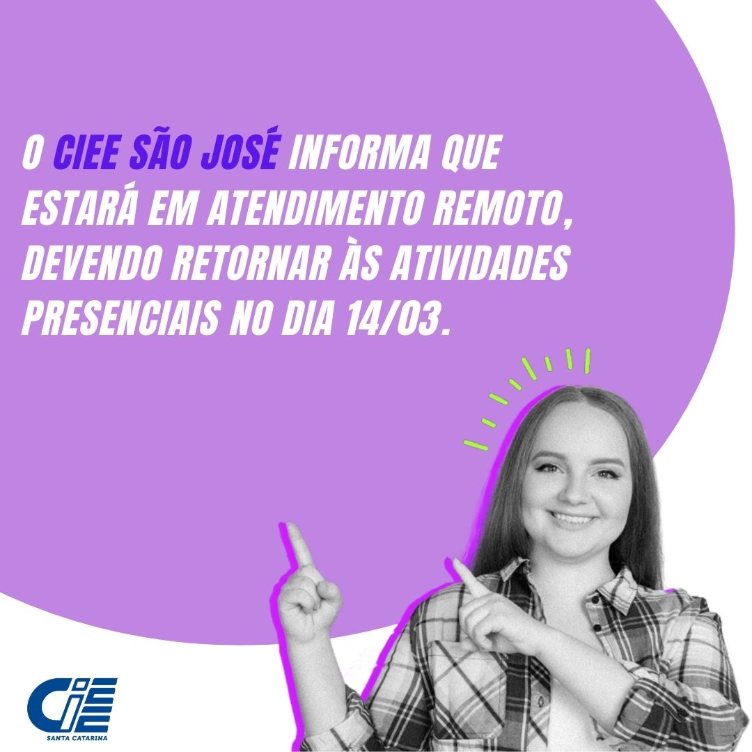 Confira os canais de atendimento remoto do CIEE São José