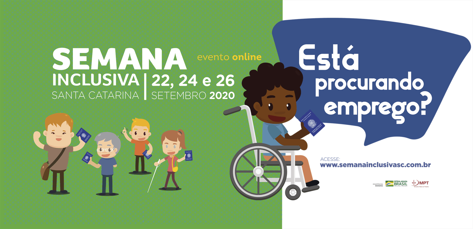 A Semana Inclusiva 2020, organizada para promover a inclusão de pessoas com deficiência e reabilitados(as) do INSS no mercado de trabalho, chega em sua 6ª edição em formato virtual e para todo o Estado de Santa Catarina.