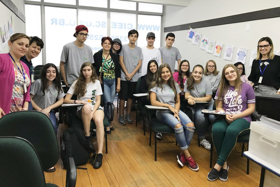 No último mês, o CIEE Blumenau recebeu 13 alunos do Ensino Médio Shalom para uma capacitação. A turma foi acompanhada por duas educadoras e uma psicóloga, Silvana Silva, que coordena o Programa Infor+ junto ao Colégio Shalom, voltado ao desenvolvimento de Competências Comportamentais.