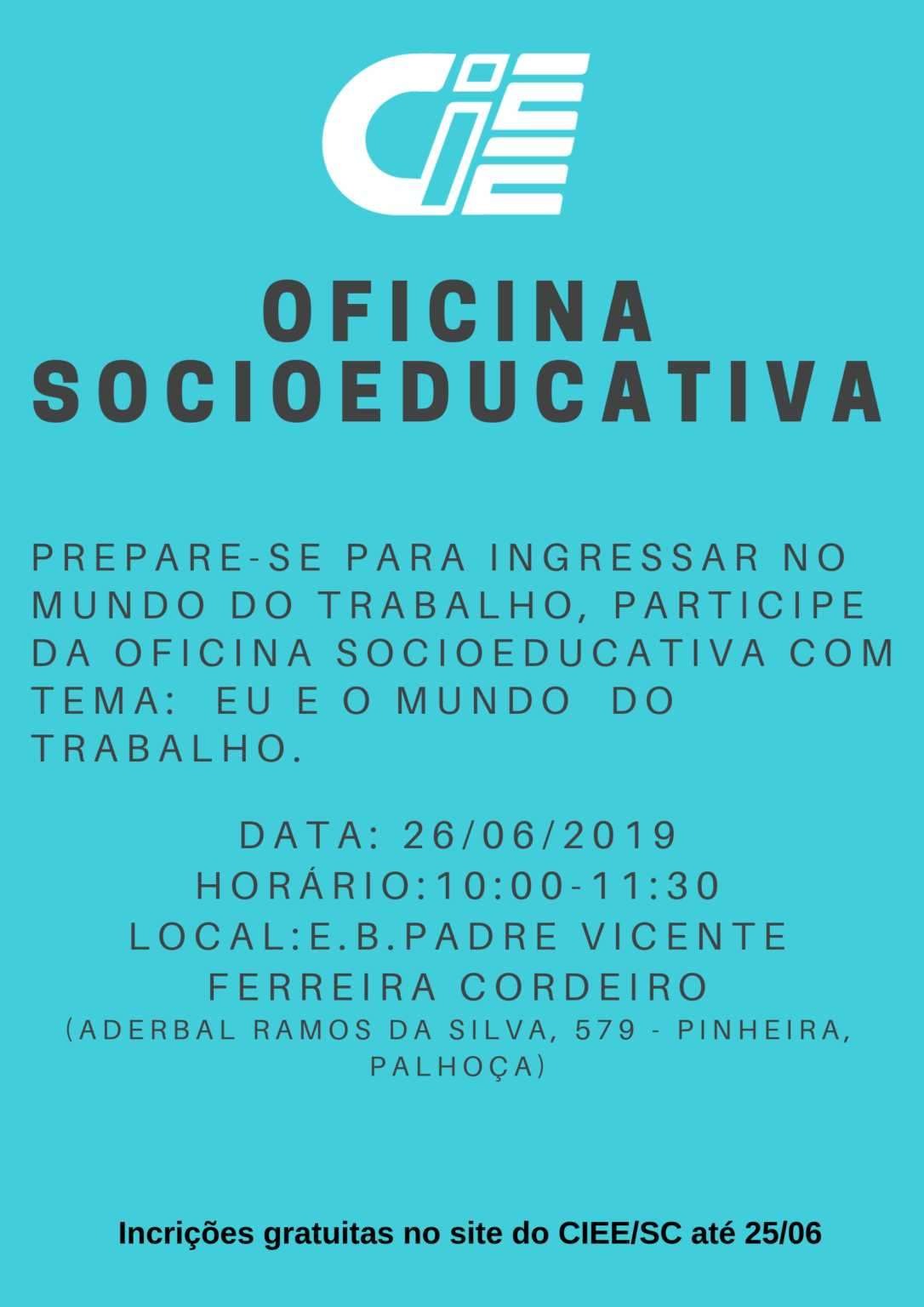 Inscrições abertas para a Oficina Socioeducativa que será realizada na Pinheira, em Palhoça.