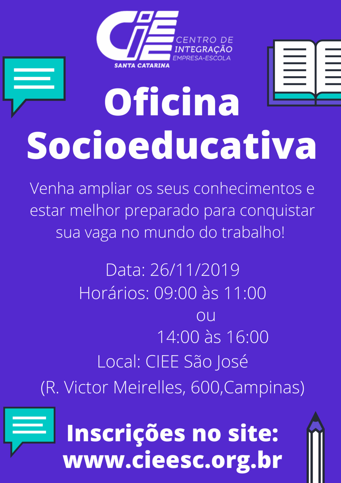 Inscrições para Oficina Socioeducativa no CIEE São José