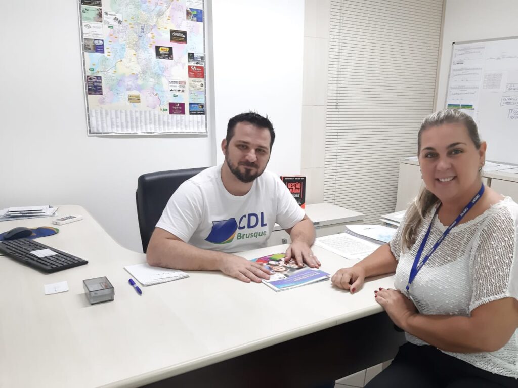 A coordenadora do CIEE Brusque, Catia Maffezzolli, esteve reunida com o gestor executivo do CDL de Brusque, Claudemir Marcolla, para