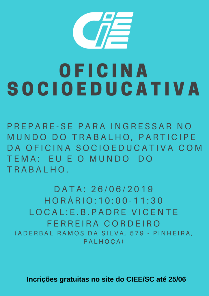 Inscrições abertas para a Oficina Socioeducativa que será realizada na Pinheira, em Palhoça. Clique aqui e inscreva-se até o dia