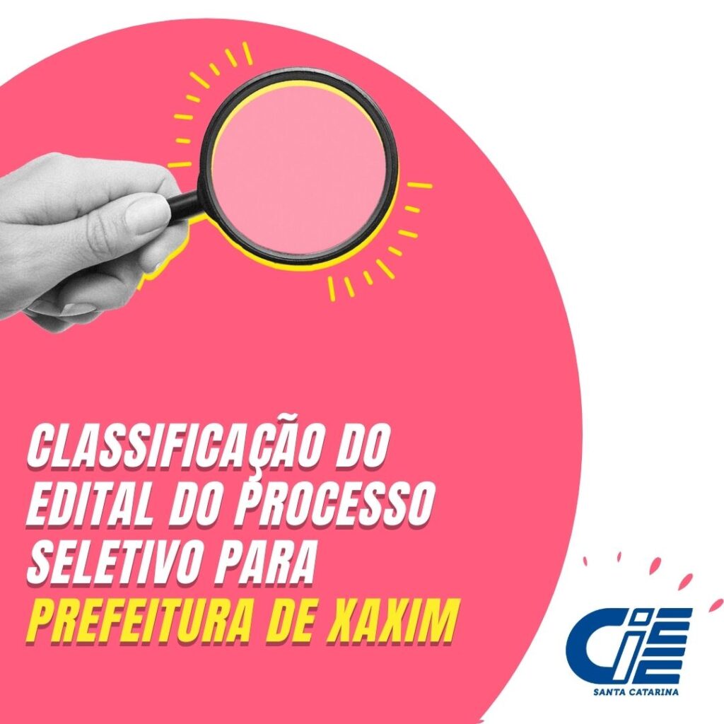 A Secretaria Municipal de Educação e Cultura de Xaxim – SC divulga a classificação do Processo Seletivo Simplificado Contínuo para