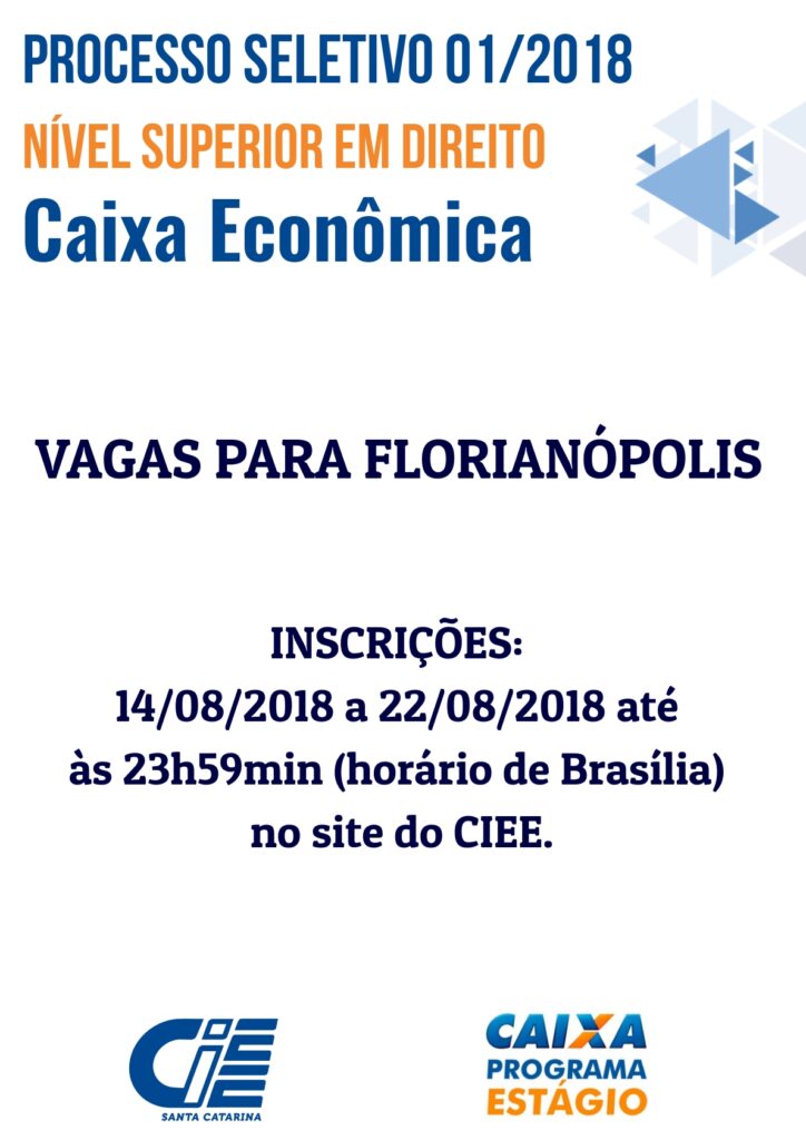 Estão abertas as inscrições para o Processo Seletivo 01/2018, nível superior em Direito, da Caixa Econômica Federal. As inscrições deverão