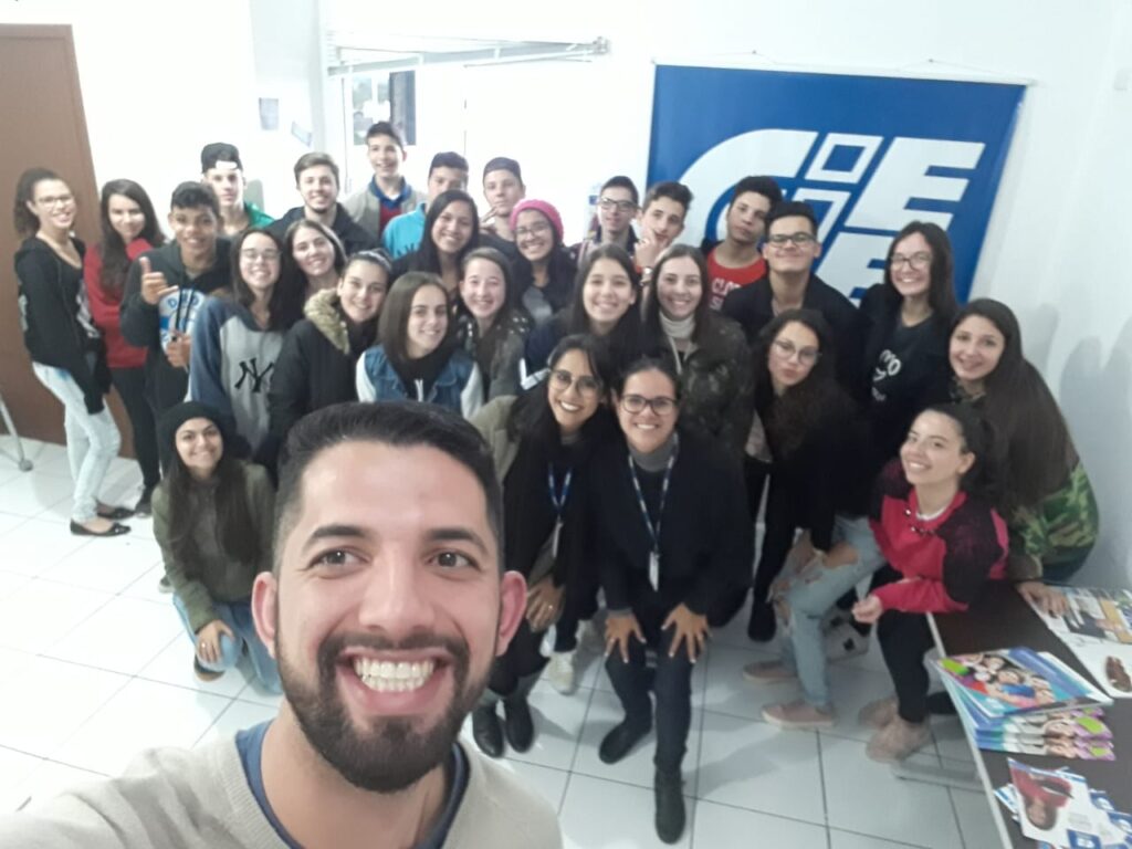 O CIEE Criciúma recebeu Guilherme Carregal, da EGALI Intercâmbio, em Urussanga para um bate papo com os aprendizes, explicando o