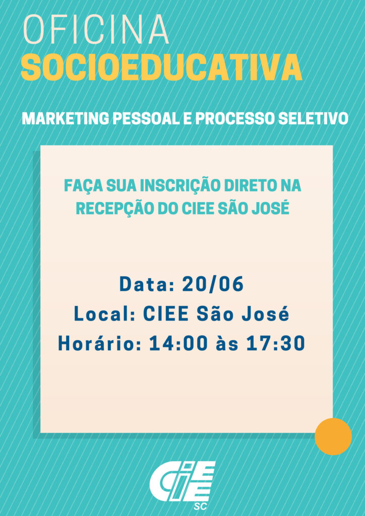 Oficina Socioeducativa CIEE São José. Participe!