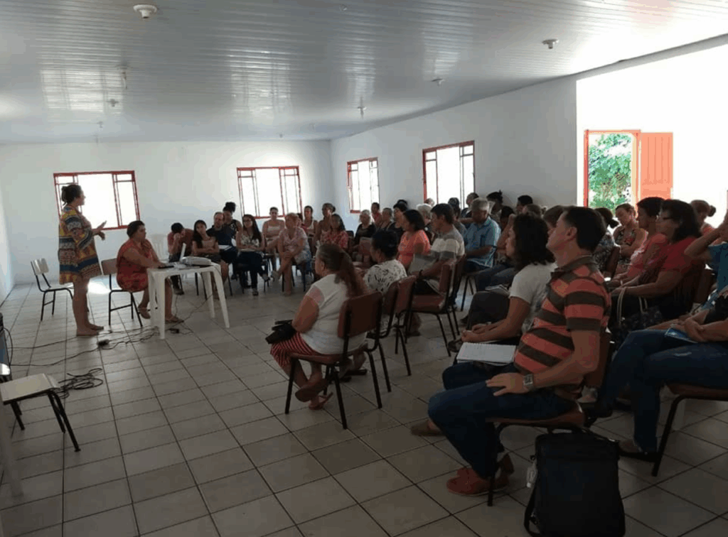 Psicóloga media roda de conversa em Encontro de Famílias do CIEE Lages