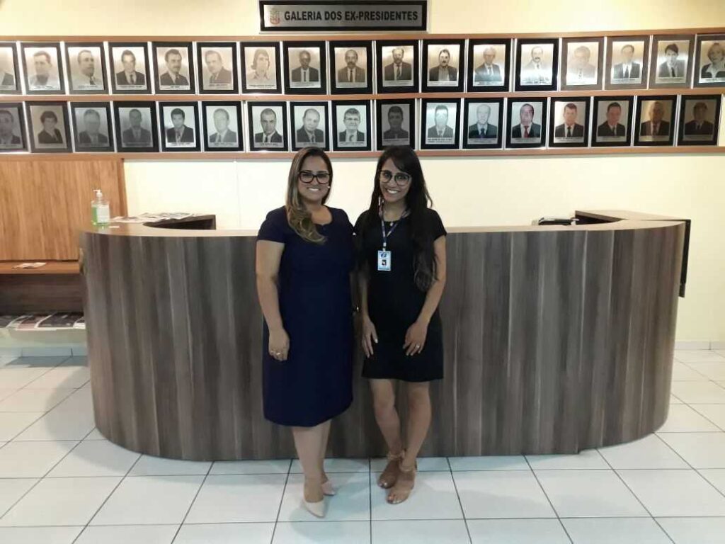 A coordenadora do CIEE Araranguá e Sombrio, Tatiane Lourenço e a auxiliar administrativo, Aline da Silva Borges, realizaram a apresentação