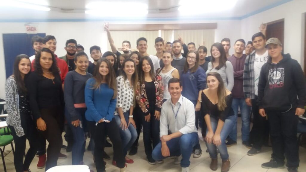 Acadêmico da Universidade Federal Fronteira Sul conversa com aprendizes do CIEE Chapecó