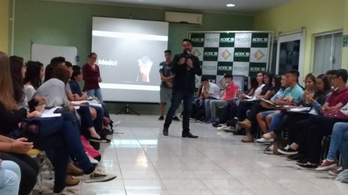 Nesta quarta-feira (28), os aprendizes do CIEE Joaçaba receberam Julio César Domingues para uma palestra sobre oratória. Formado em administração,