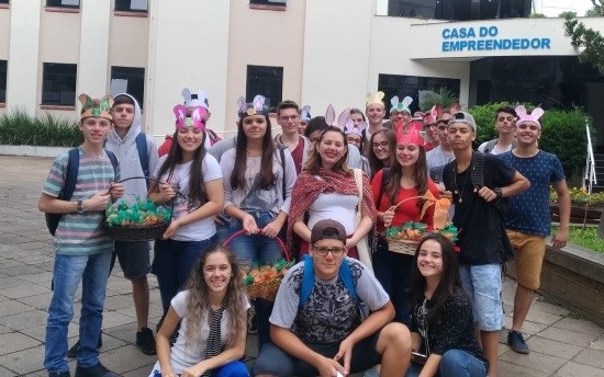 Nesta segunda-feira (26), os aprendizes do CIEE Joaçaba realizaram ação voluntária de Páscoa, levando doces para as crianças da creche