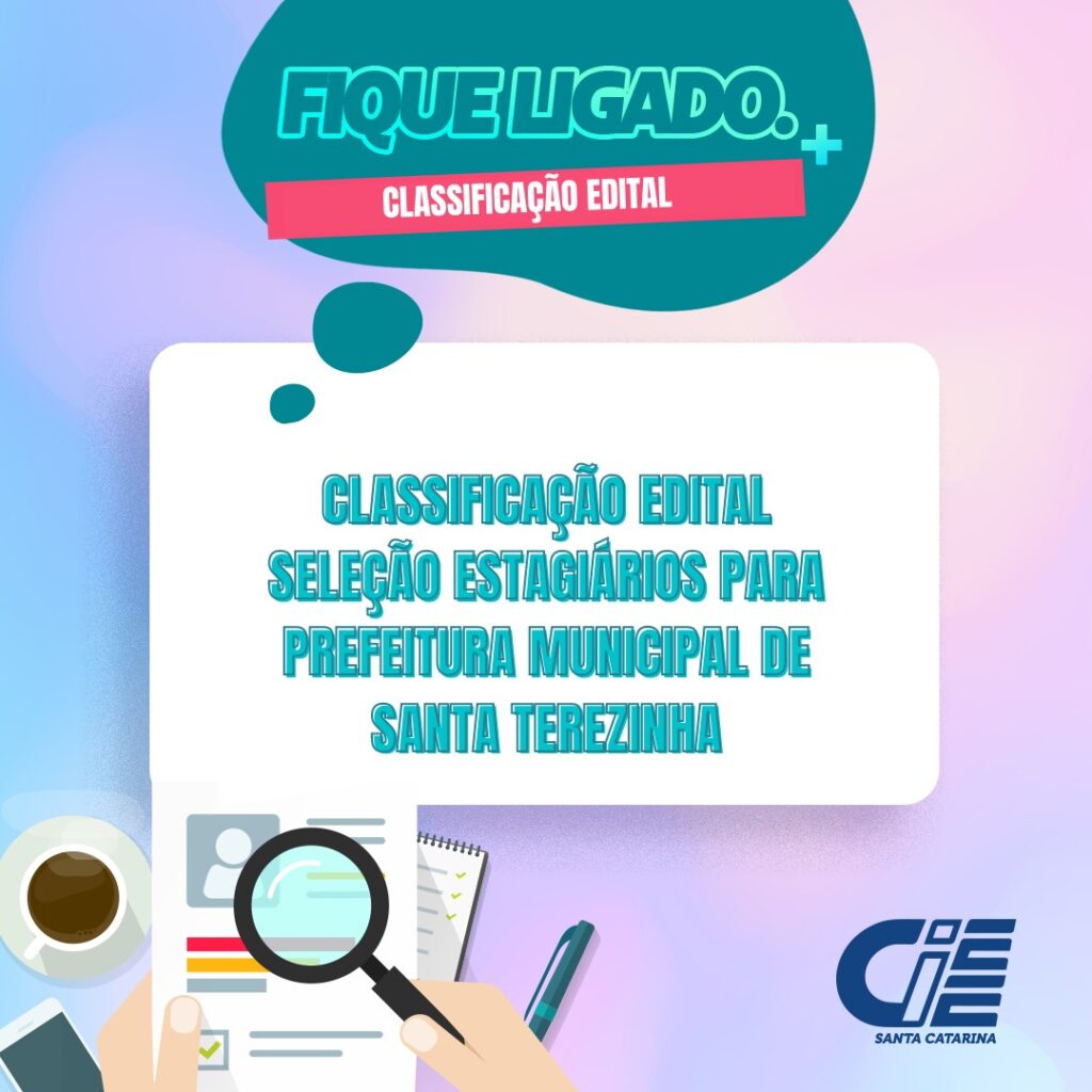 A Prefeitura de Santa Terezinha divulga classificação do Processo Seletivo Simplificado de estagiários, para o preenchimento de vagas de estágio