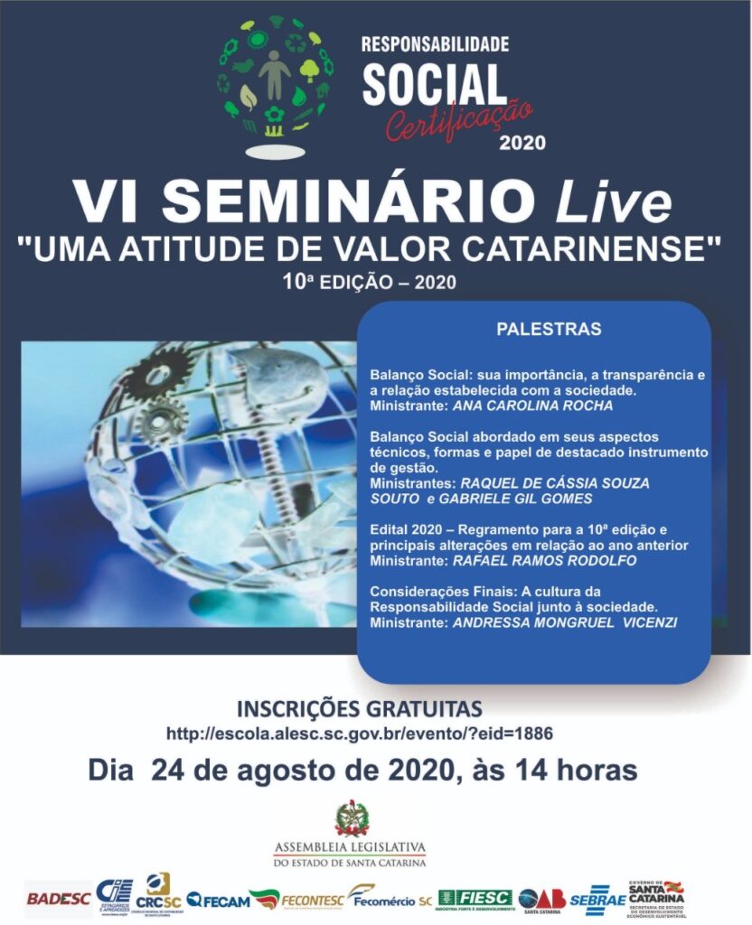 A Comissão Mista de Responsabilidade Social 2020 realizará, no dia 24 de setembro, às 14 h, o VII SEMINÁRIO: Certificação