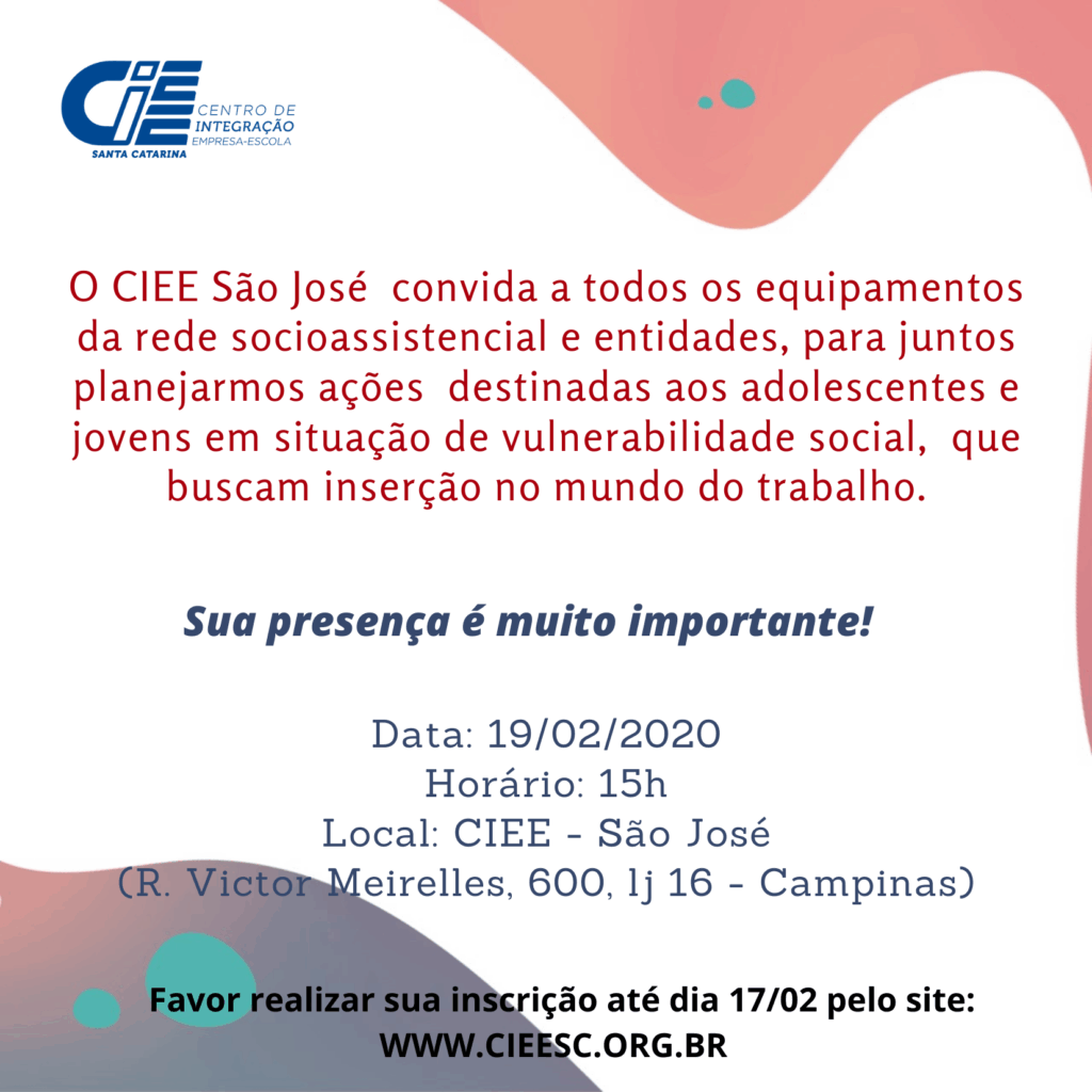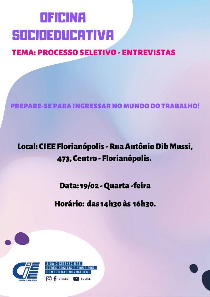 Inscrições Oficina Socioeducativa CIEE Florianópolis – 19/02