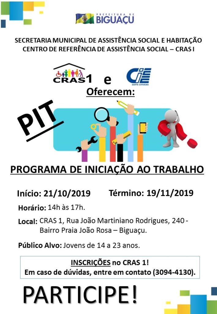 Faça sua inscrição para o PIT no CRAS 1 Biguaçu