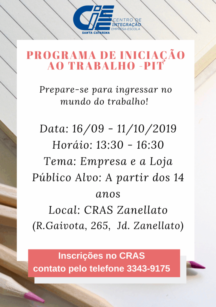 Inscrições Programa de Iniciação ao Trabalho no CRAS Zanellato