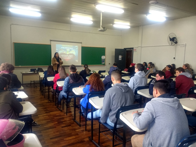 Os aprendizes do CIEE Lages receberam a assistente social do Hemosc Lages, Jady Mabilia, para uma palestra sobre a doação