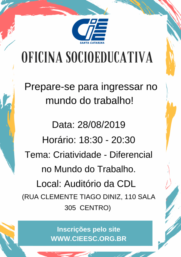 Inscrições para Oficina Socioeducativa na CDL Santo Amaro da Imperatriz