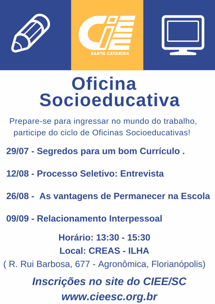 Inscrições para Oficinas Socioeducativas CREAS Ilha