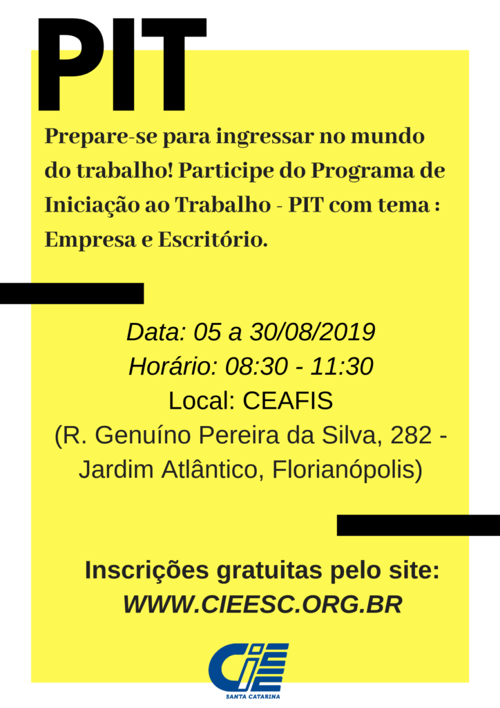 Inscrição para Programa de Iniciação ao Trabalho – PIT no Ceafis