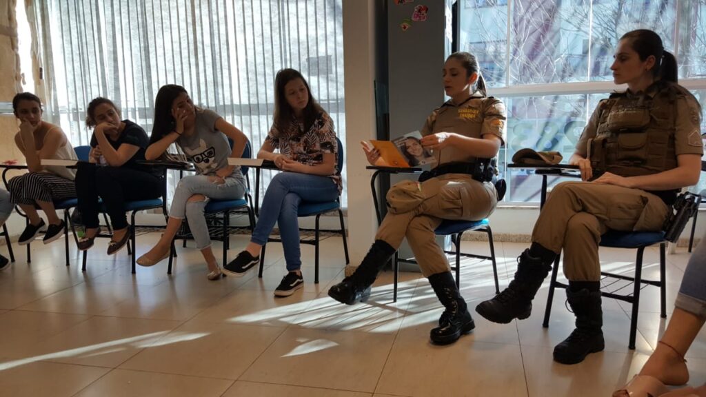 Na última semana, o Programa Rede Catarina de Proteção à Mulher da Policia Militar/SC esteve presente no CIEE São Miguel