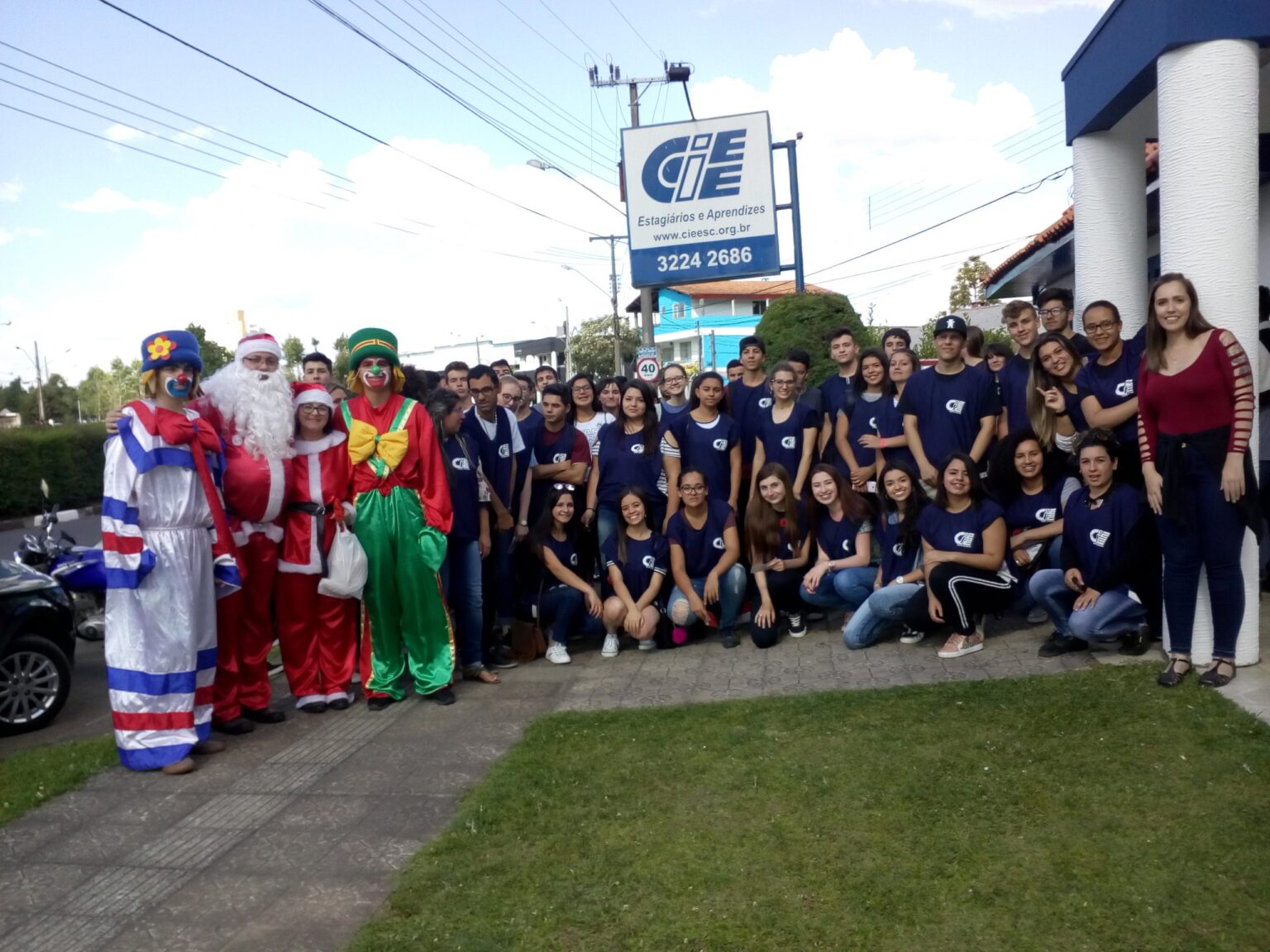 Os aprendizes do CIEE Lages pelo segundo ano consecutivo realizaram ação de Natal Voluntária. Os jovens adotaram 118 crianças carentes do CEIM Eudalto Lopes de Sá para presenteá-las. A ação contou com a presença do Papai Noel, Mamãe Noel e os palhaços Patati e Patata para alegrar as crianças.