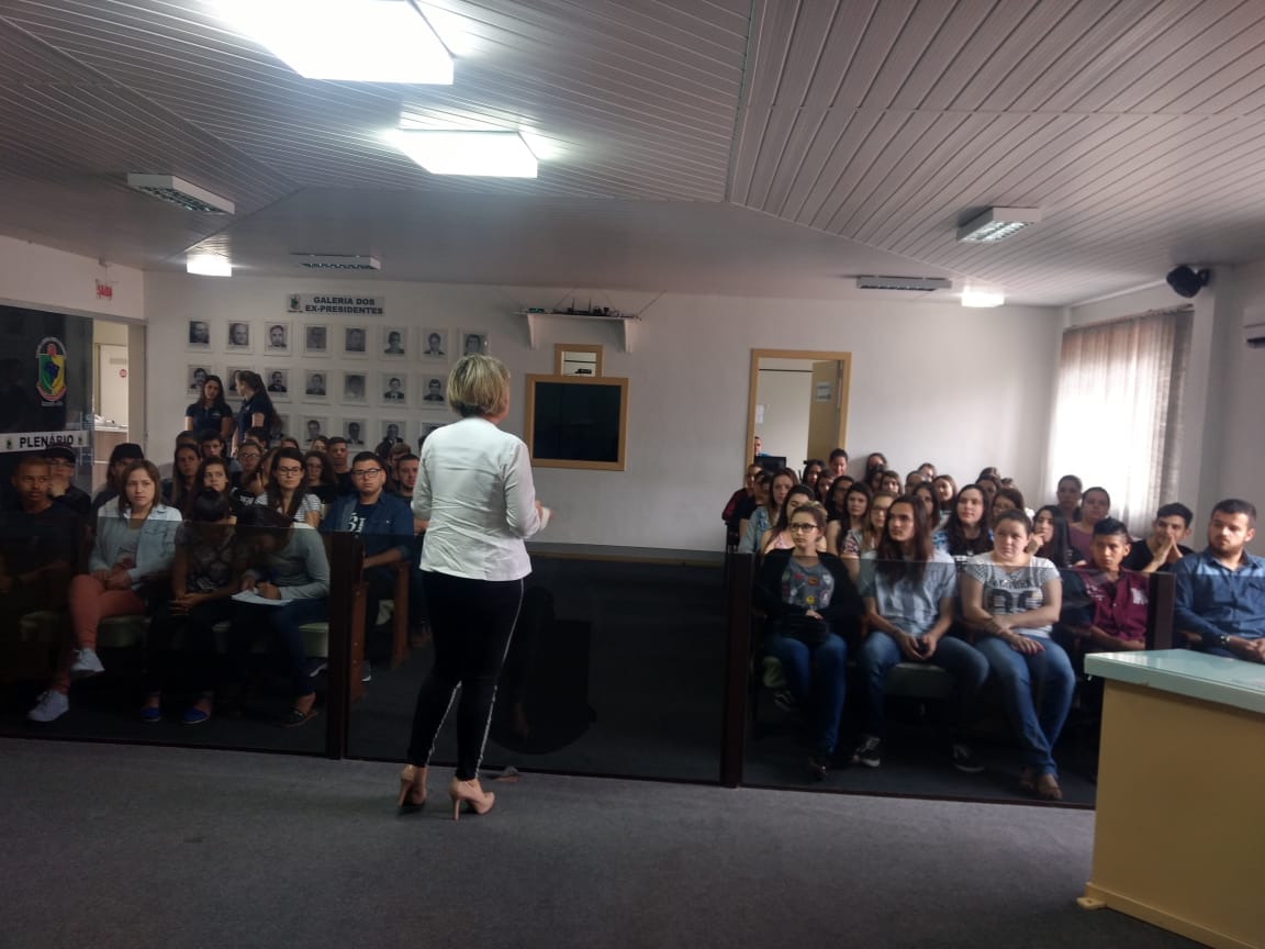 Na ocasião, os estudantes participaram de uma palestra com Tania Claumann, que abordou os temas como Comprometimento, ética e comportamento no ambiente de trabalho.