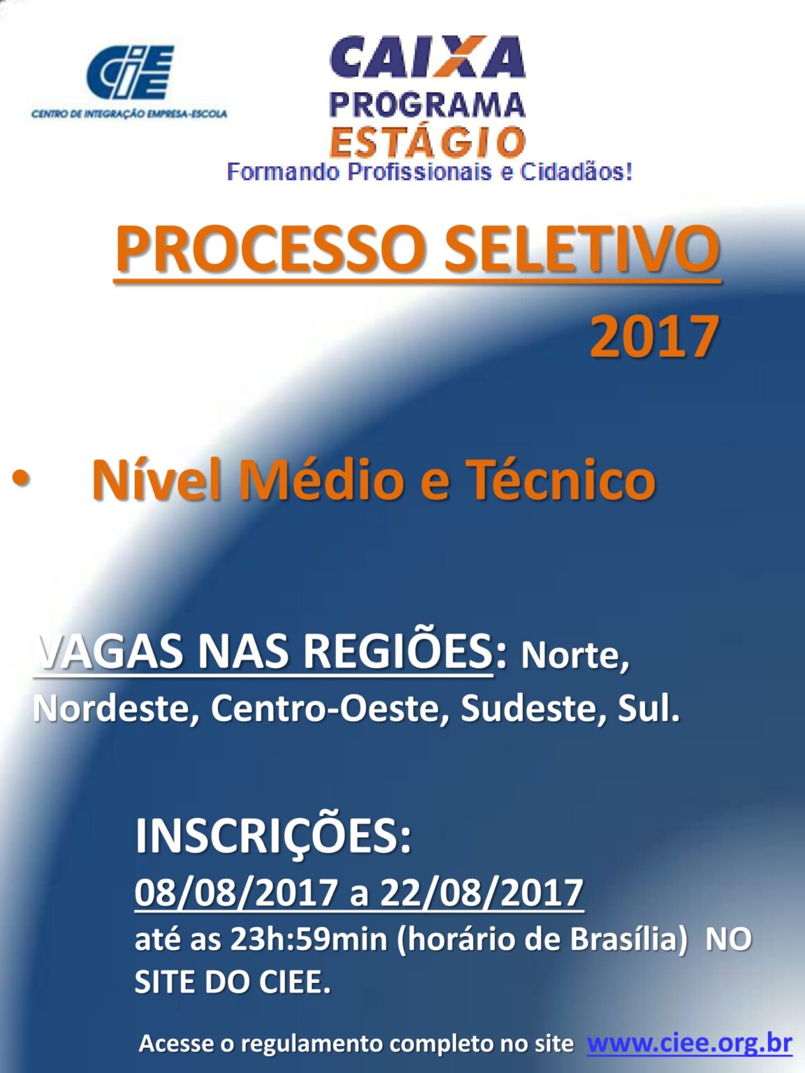 Processo Seletivo Caixa Econômica Federal – Ensino Médio/Técnico