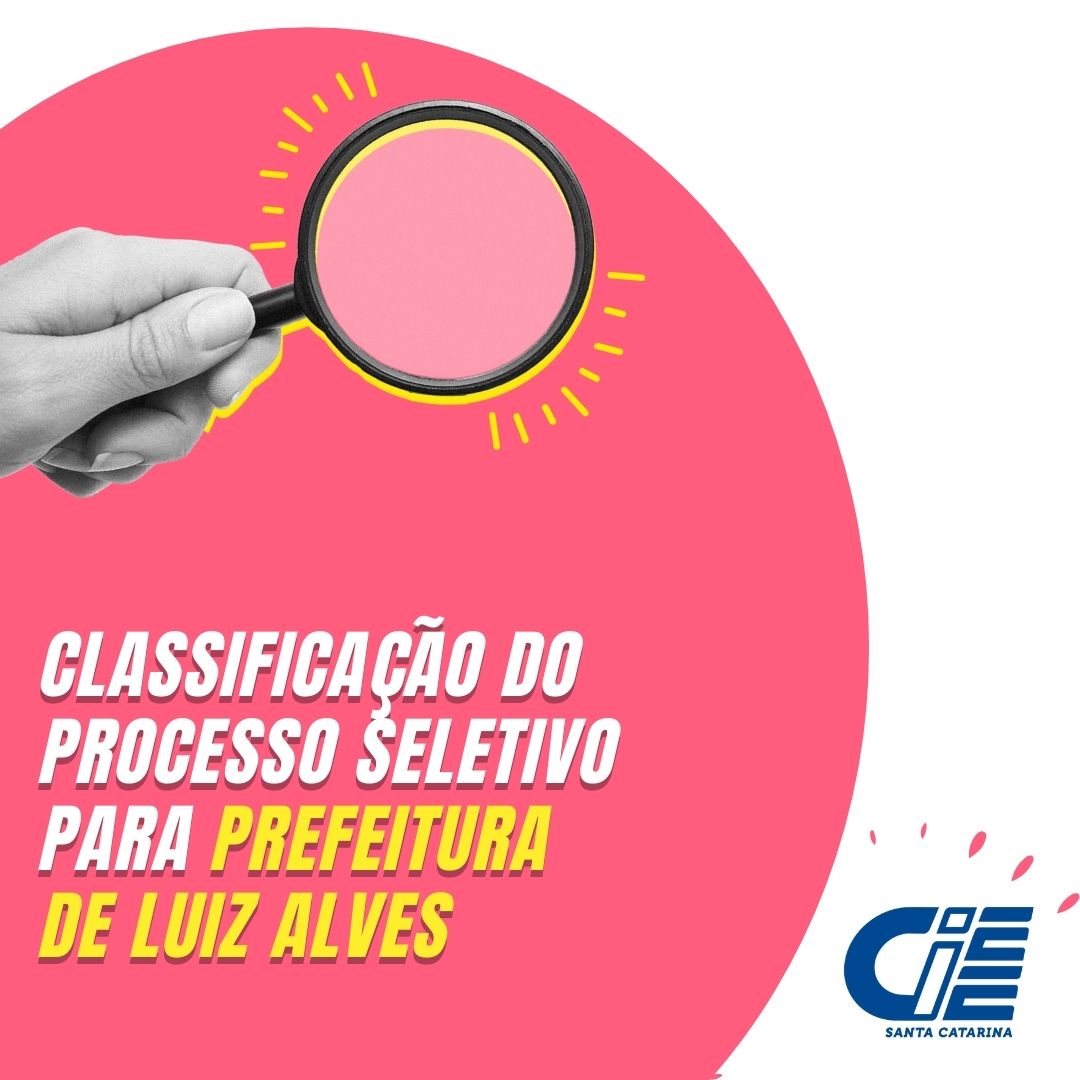 A Prefeitura Municipal de Luiz Alves divulga a classificação do edital do Processo Seletivo Simplificado para cadastro de reserva de interessados na qualidade de estagiários para executar as funções inerentes à respectiva formação do interessado, junto aos órgãos Municipais, conforme dispõe o presente edital.