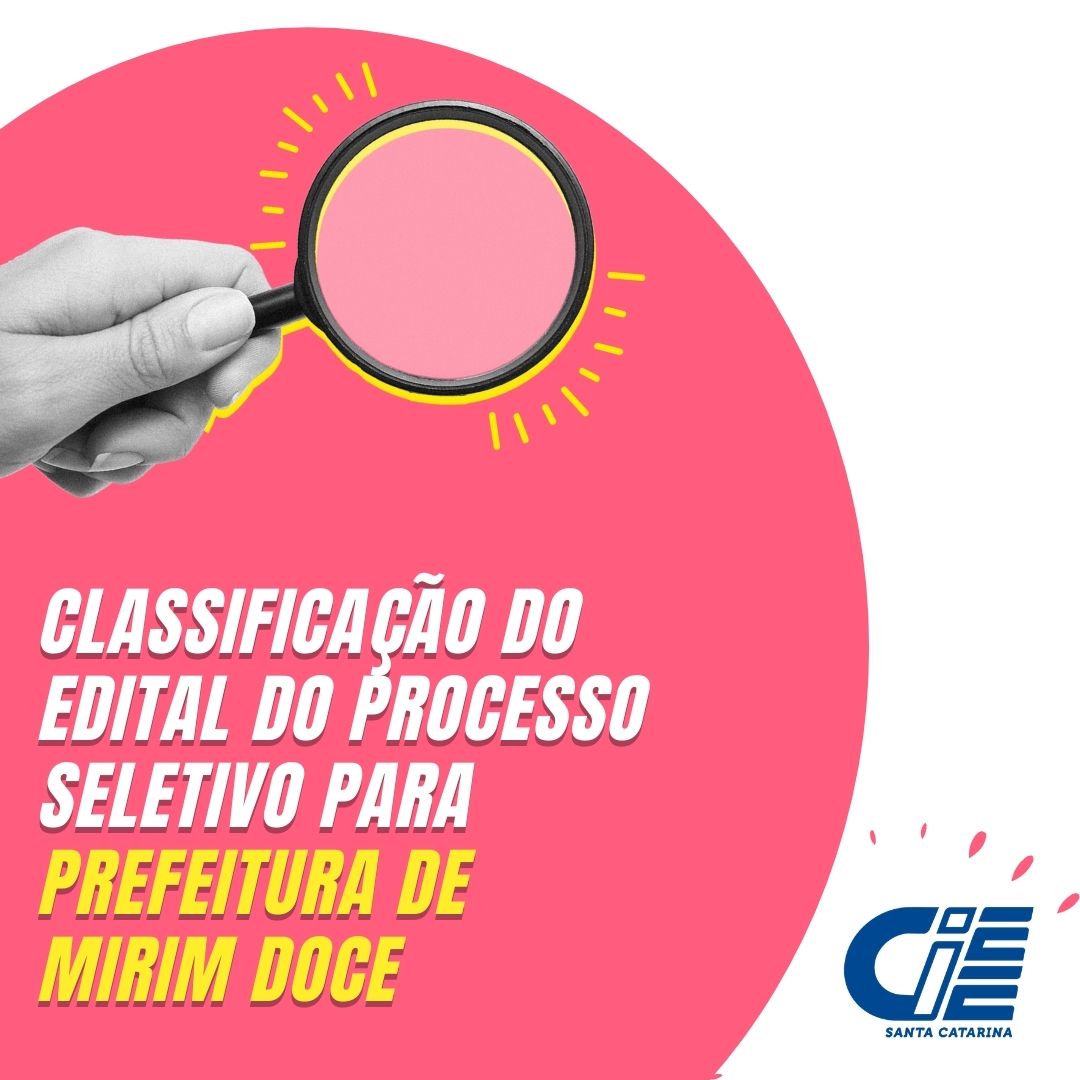 Prefeitura de Mirim Doce divulga classificação do Processo Seletivo Simplificado de estagiários, para o preenchimento de vagas de estágio não obrigatório e cadastro de reserva, destinado a estudantes regulamente matriculados em Instituições de Ensino de Educação de Nível Superior.