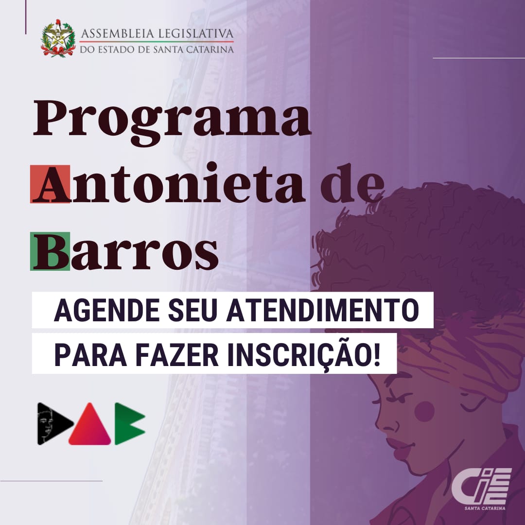 Estão abertas as inscrições para o Programa de Estágios Antonieta de Barros – PAB na Assembleia Legislativa de Santa Catarina. Serão vagas para contratação ao longo do segundo semestre e cadastro de reserva, todas para Florianópolis. O PAB é voltado para adolescentes e jovens regularmente matriculados no Ensino Médio, Técnico e Superior, com idade entre 16 e 24 anos, cuja renda familiar não ultrapasse 2,5 salários-mínimos (R$3.210,00).