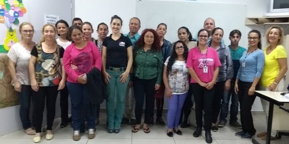 A reunião foi dirigida pelas colaboradoras Renata da Silva dos Santos e Ledjara Silveira de Oliveira, e contou com a participação da psicóloga do CRAS, Hanna Arns Raupp e da educadora do projeto Isabel Cristina Biollo Borghetti.