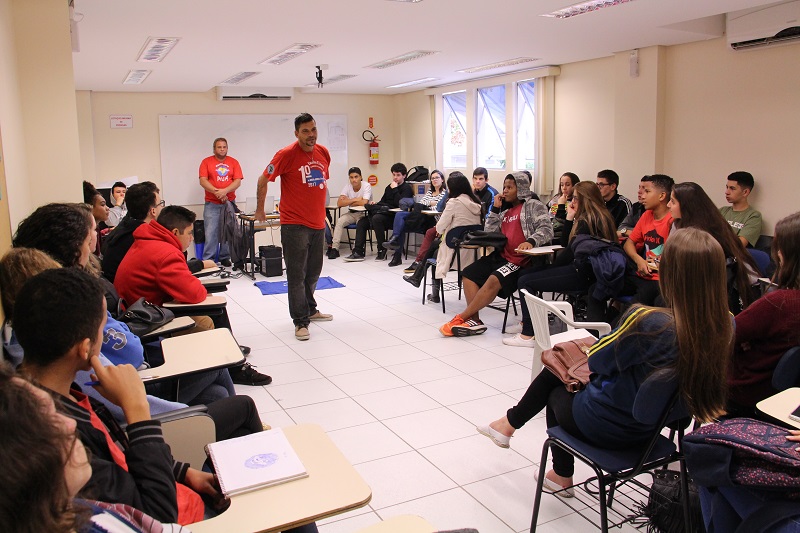 Os aprendizes do CIEE Florianópolis receberam hoje (6) uma palestra sobre prevenção ao uso de drogas, com os representantes da população em situação de rua, Daniel Paz dos Santos, André Schaefer e Aline Silva de Salles.